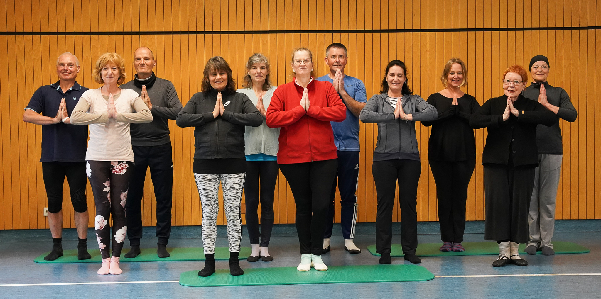 Gymnastikmatten sind in der Halle vorhanden. Es ist sinnvoll ein großes Handtuch und ein Kissen (falls vorhanden ein Meditations-/Yoga-Kissen) mitzubringen.