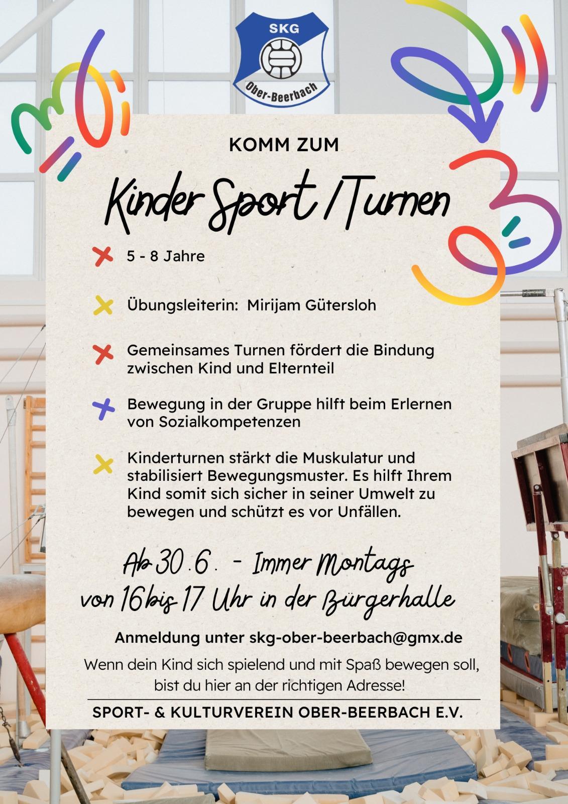 Das Kinder-Sport / -Turnen wird für Kinder von 5 bis 8 Jahren angeboten.